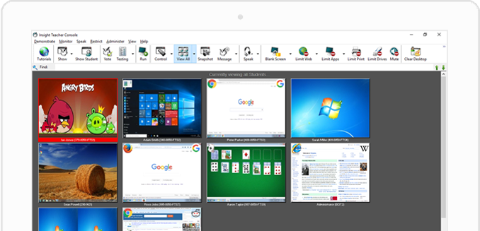 Use the classroom thumbnail monitoring feature to see what the students are doing with a single glance. Provide encouragement through collaboration and deliver an interactive lesson that keeps students engaged. Central management helps to eliminate the headache of managing multiple labs, schools, and networks.